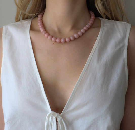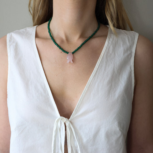 Rose Quartz Fish Necklace with Green Onyx Gemstones