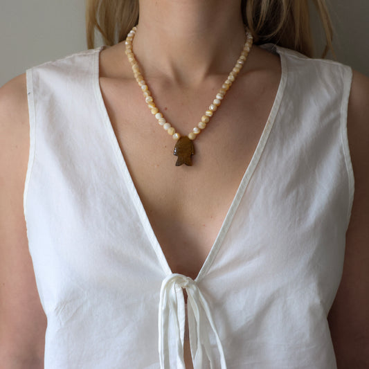 Tigers Eye Fish Necklace with Mother of Pearl Gemstones