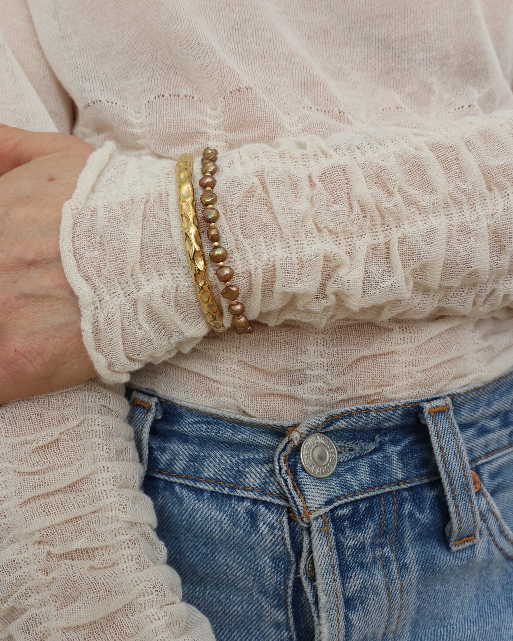 The Amelia Bracelet is a timeless, classic bangle designed to elevate any look. Crafted from gold-plated stainless steel, it offers a warm, lasting shine that complements every season and setting.