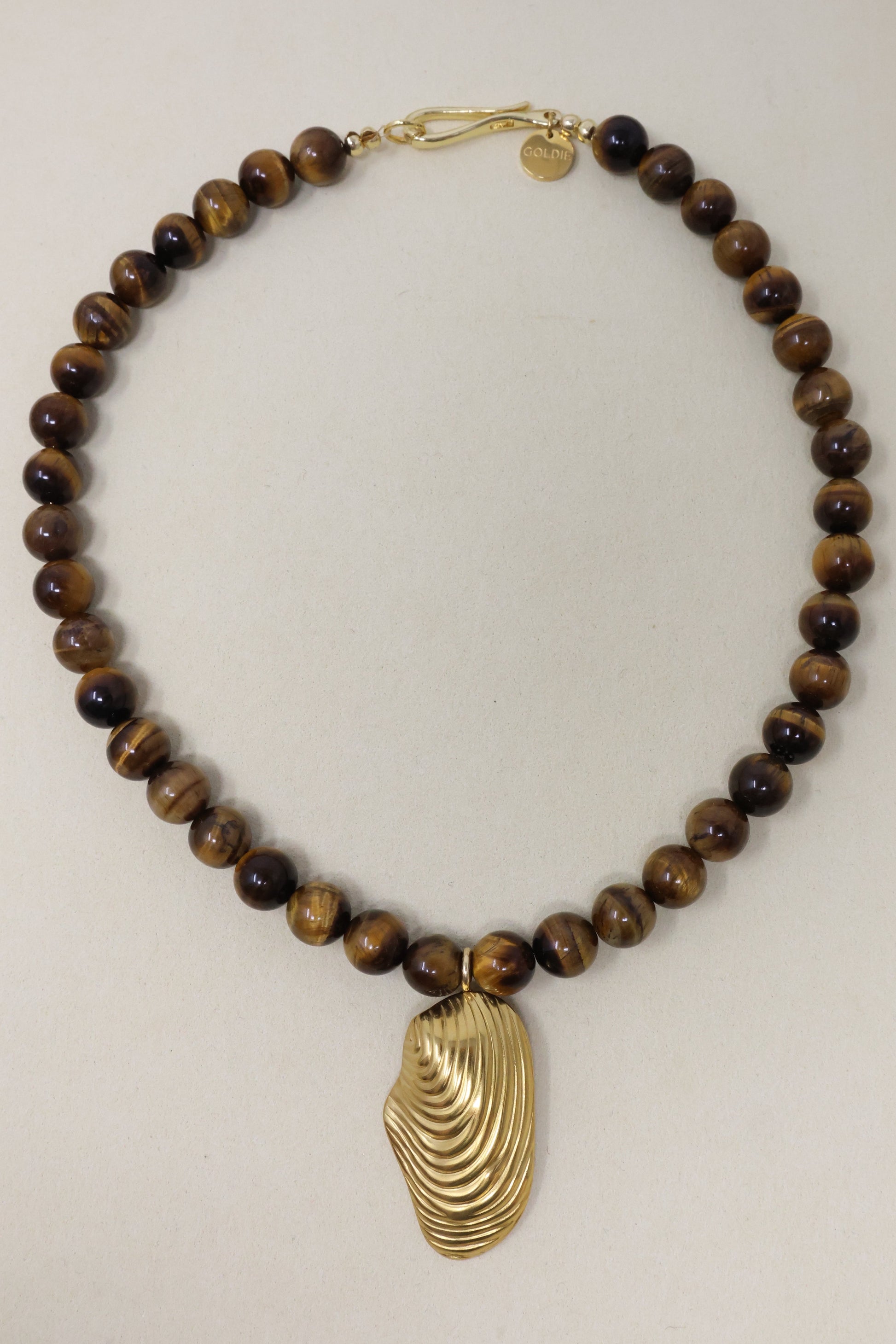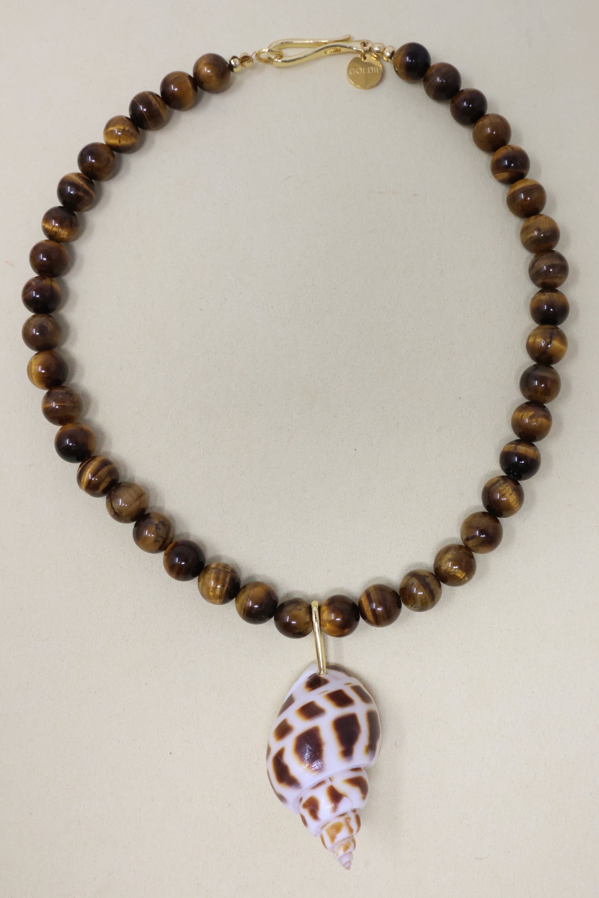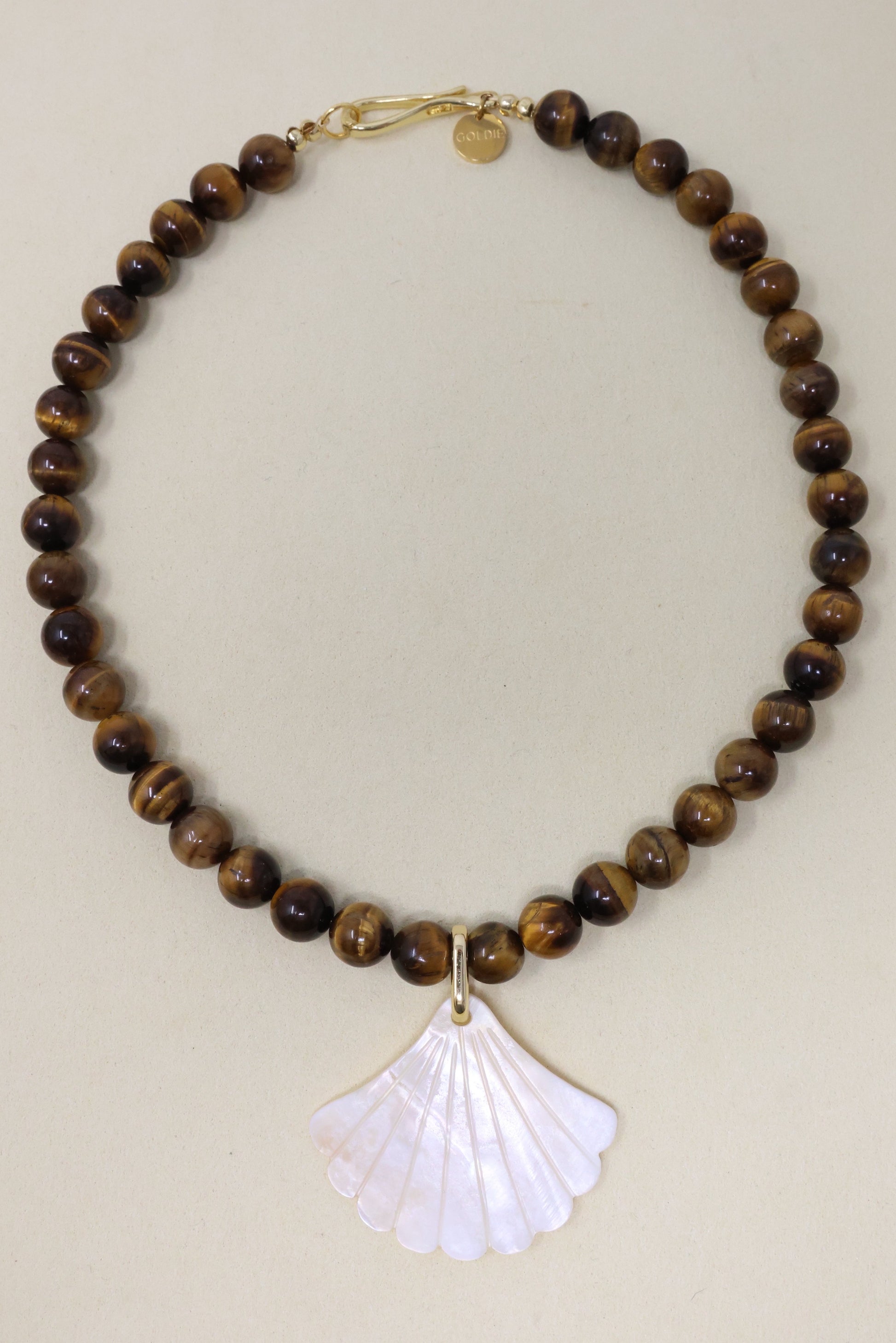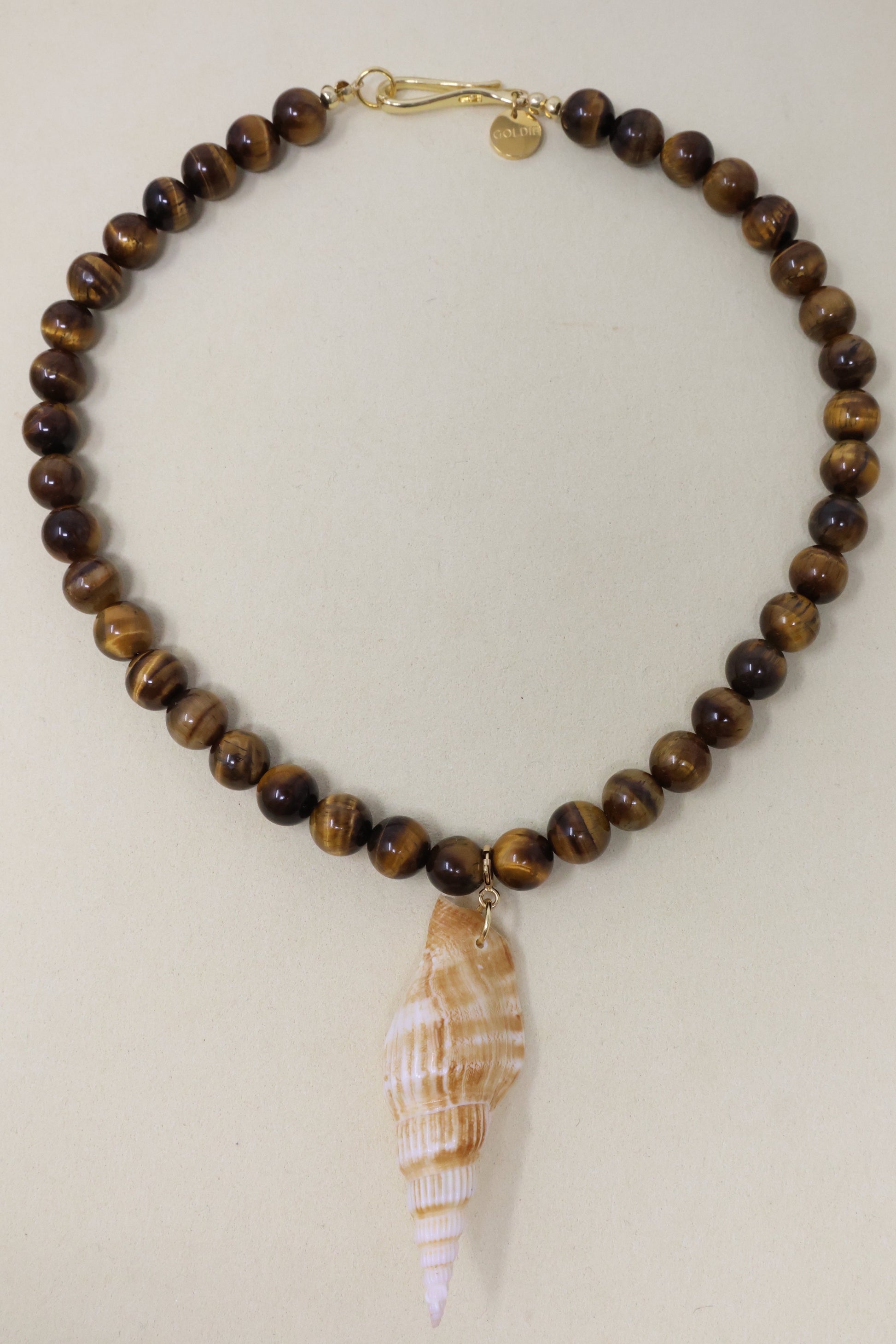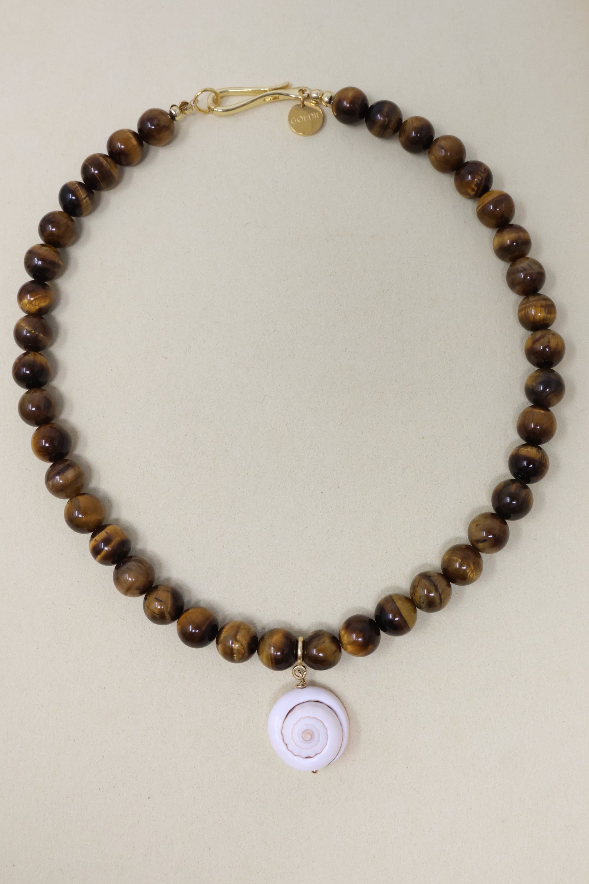 The Iona Necklace is beautifully handcrafted with Tiger’s Eye gemstones, strung together and secured with a durable gold-filled clasp. Its bold yet feminine tones make it a versatile piece that pairs effortlessly with other jewellery.
